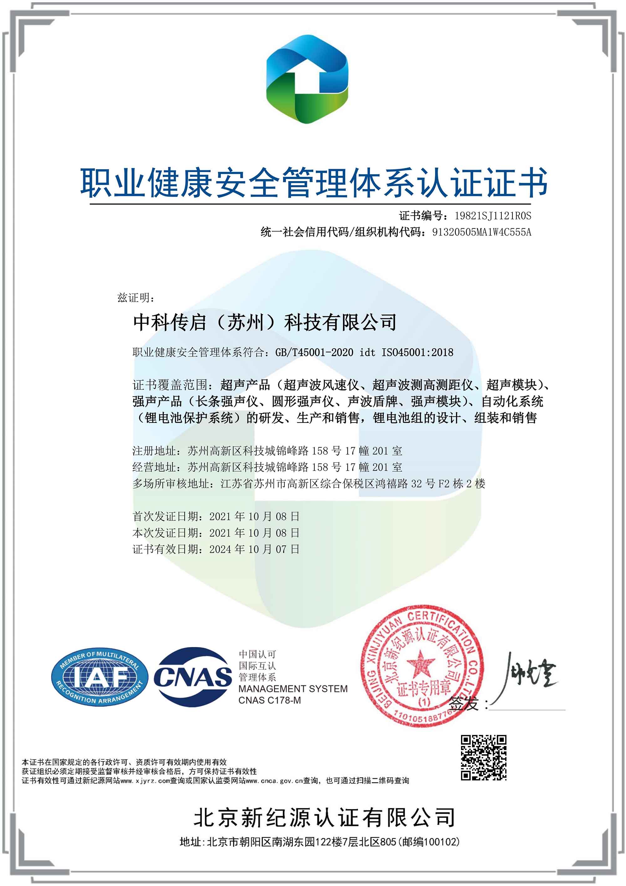 職業(yè)健康管理體系-OHSMS-中文證書(shū)