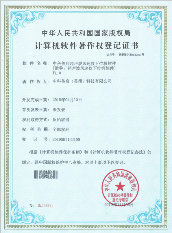 中科傳啟超聲波風速儀客戶端軟件[簡稱:超聲波風速儀客戶端軟件]V1.0